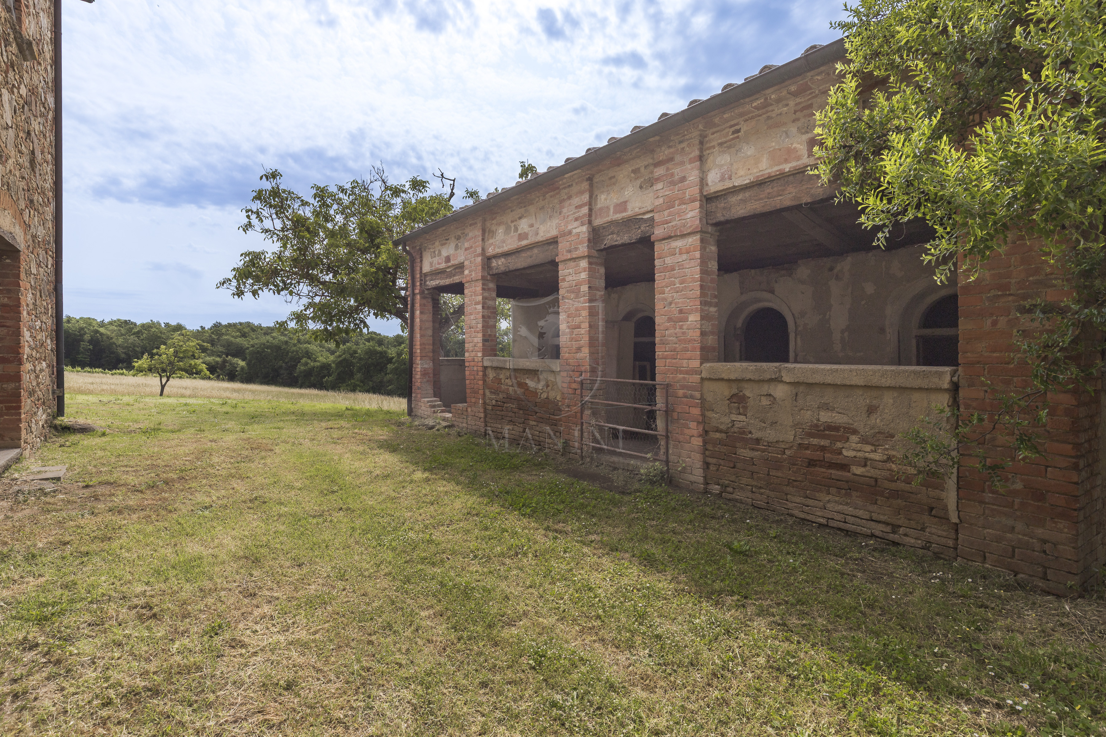 🌳 Outside, the land embraces the house with discretion. Among spontaneous clearings, fruit trees and soft lines, there are two other agricultural annexes, precious for those who want a laboratory, a greenhouse or simply a corner to transform.