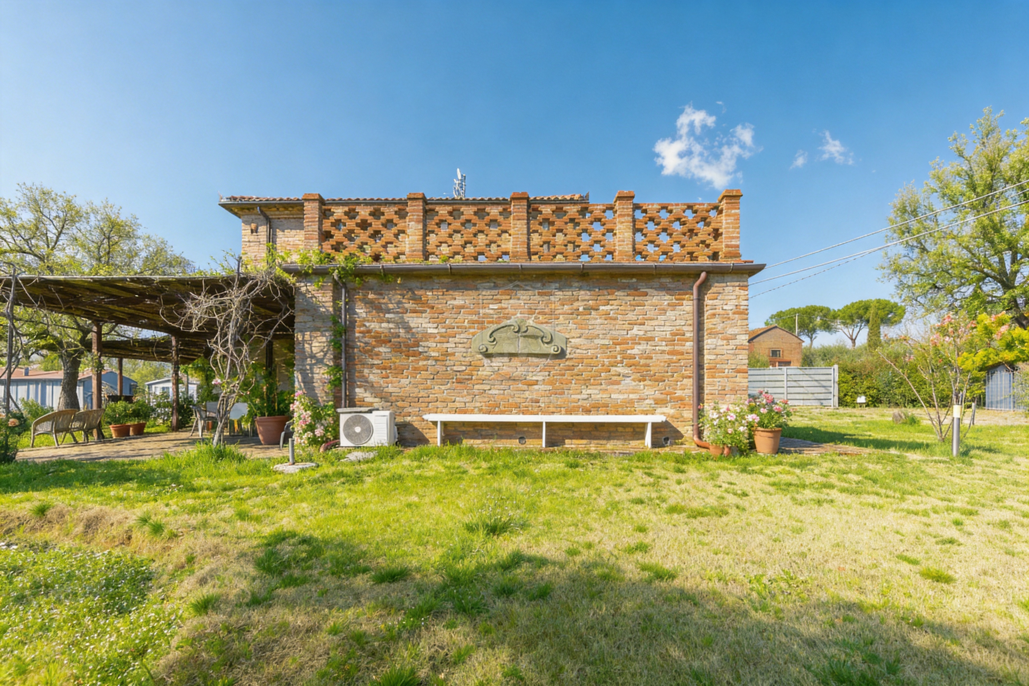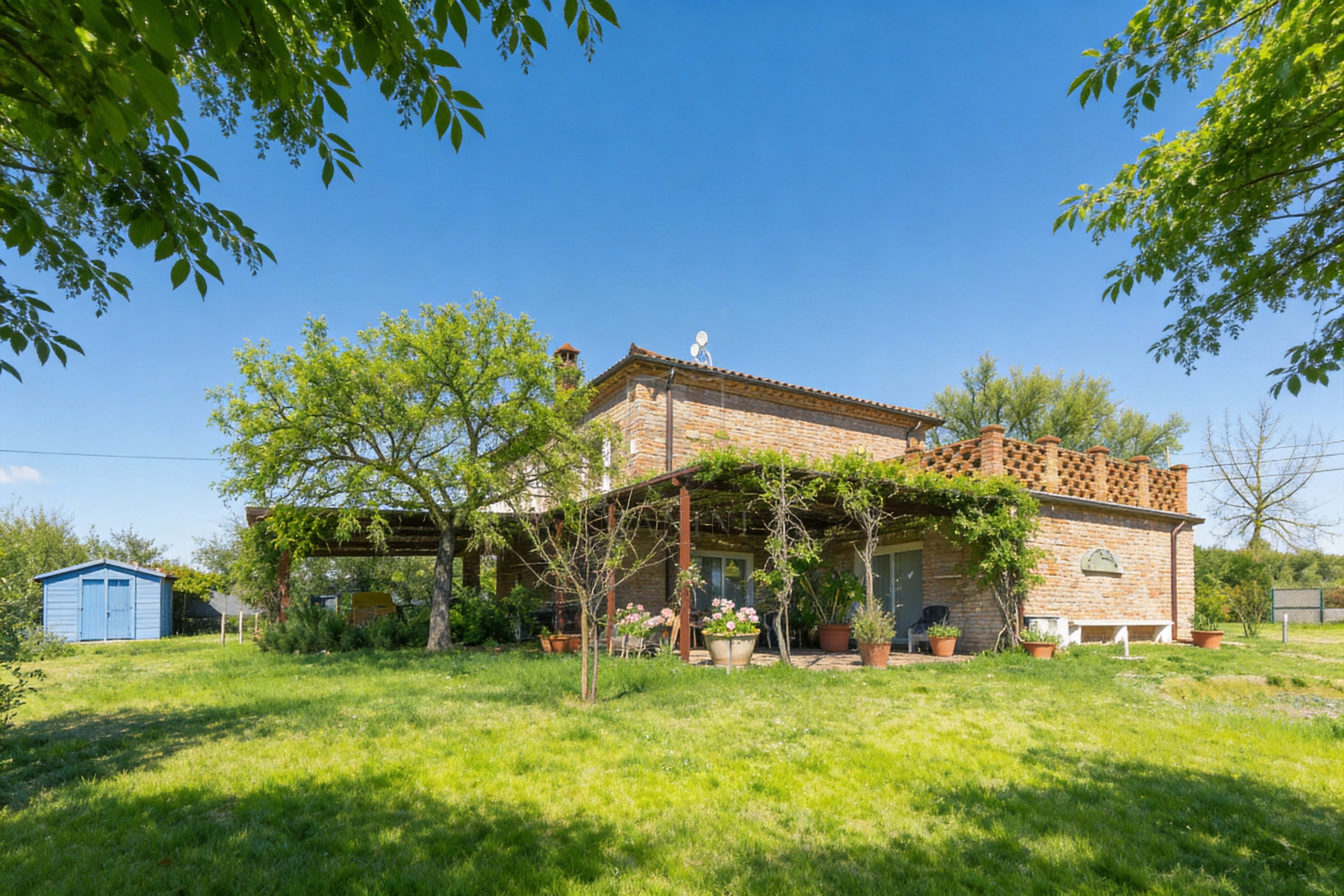 In the heart of the Valdichiana, just minutes from the village of Lucignano, this villa interprets Tuscan tradition with a contemporary twist. Exposed brick, shaded pergolas, and panoramic windows blend with bright spaces and recently renovated systems, creating a residence ready to move into.
